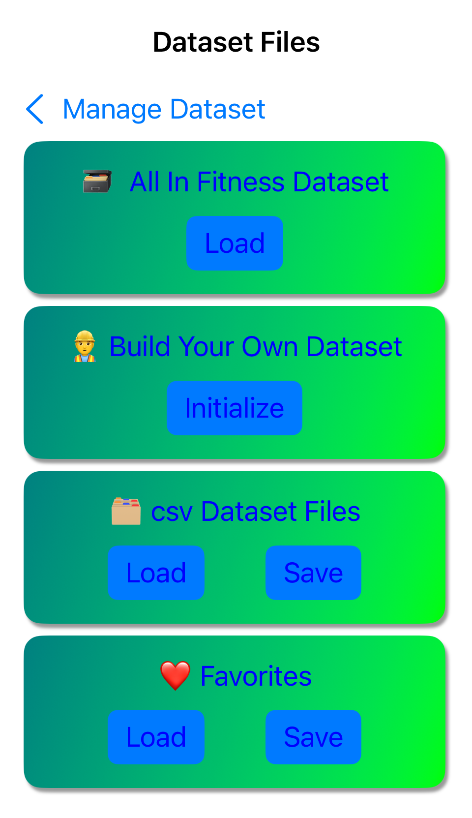 - You can also build your Dataset in a spreadsheet app and then load it into All In Fitness.